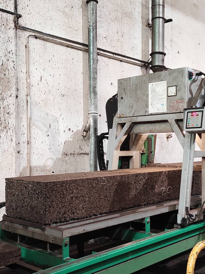 Rezanje: Nakon završenog procesa prešanja, blokovi pluta se režu na ploče određenih dimenzija koje se mogu koristiti kao podna izolacija.